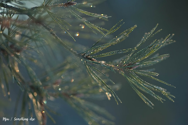 Nämä kuusen oksat kimmelsi kuin niissä olisi ollut täynnä pieniä timantteja.
